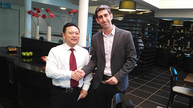 姜南董事长与以色列 丹投资公司Roy Kriezman洽谈在以色列生物技术投资转让业务